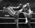 Простая комбинация из двух прямых ударов руками в голову работает и в тайском боксе, позволяя бойцам, владеющим техникой ударов руками, сметать соперников не хуже, чем с применением традиционных тайских «примочек» в виде ударов локтями и коленями.