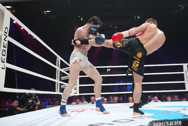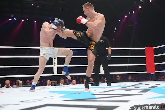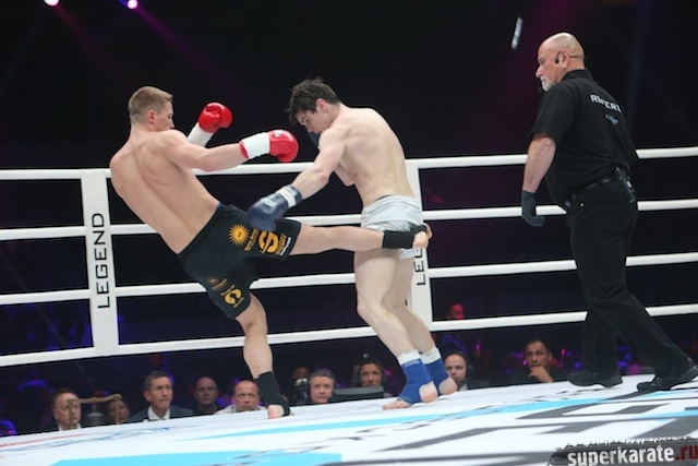 Главной составляющей бойцовского шоу «Легенда», состоявшегося 25 мая в Москве на Малой Спортивной Арене спорткомплекса «Лужники», стал турнир четверки по правилам К-1 в среднем весе. Здесь в первом полуфинале Артур Кишенко (Украина) победил Юрия Бессмертного (Беларусь) единогласным решением судей в экстрараунде.