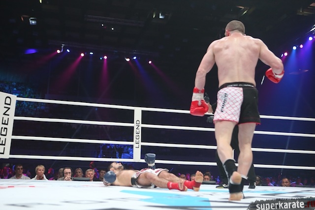 Во втором полуфинальном поединке турнира средневесов по правилам К-1, состоявшегося в рамках бойцовского шоу «Легенда», Джабар Аскеров (Россия) во втором раунде нокаутировал Энрике Гогохия (Украина).