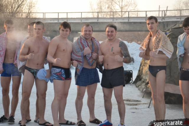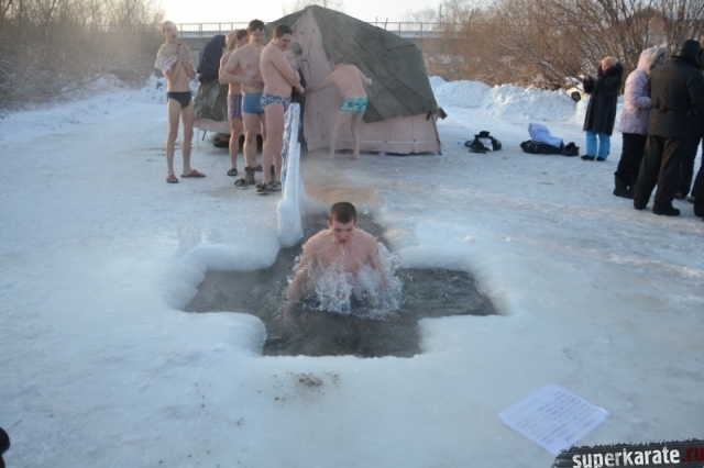 Красноярские каратисты отметили Крещение Господне. Это духовный праздник. По традиции в этот день проходят крещенские купания. Изменять традициям не стали и наши каратисты, несмотря на 30 градусный мороз.