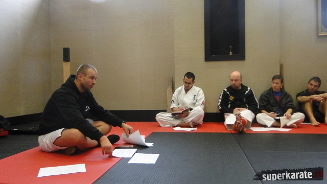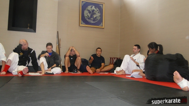 Встреча обещала быть интересной – состав участников семинара расширился, в их число входили тренеры Киокушина из Санкт-Петербурга, Москвы и Подмосковья. У каждого из них за плечами помимо личного тренировочного и соревновательного опыта накоплен колоссальный запас знаний по проведению тренировок и подготовке спортсменов к соревнованиям. Давать теоретический семинар такой искушенной аудитории - нелегкое, даже рискованное дело.