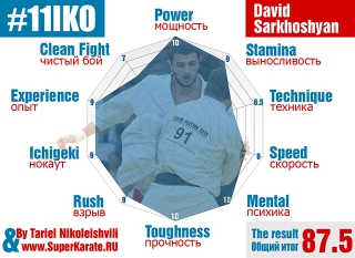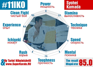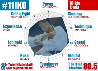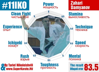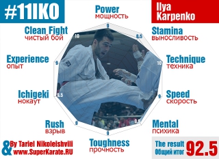 Действующий абсолютный Чемпион мира Тариел Николеишвили дал свой сравнительный анализ бойцов, которые являются самыми главными претендентами на чемпионский титул 11-го абсолютного Чемпионата мира по киокушинкай каратэ. Мы уже публиковали похожий рейтинг бойцов от шихана Кидачи. Но в анализе Тариела использовались дополнительные критерии (опыт и «фолизм») для бойцов и максимальная оценка была строго ограничена 10 баллами. Также Чемпион оценил свои характеристики, которые у него были на момент 10 Чемпионата мира.