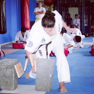 Это всё началось 2 апреля 2002, вскоре после того, как я нашла доги (тренировочную одежду) и старые пояса моего брата (умер в 2007), который тоже тренировался и заработал зеленый пояс. Я начала искать зал для тренировок, подрабатывала, чтобы заработать денег, и в итоге с финансовой помощью моих мамы и сестер начала заниматься каратэ киокушин.