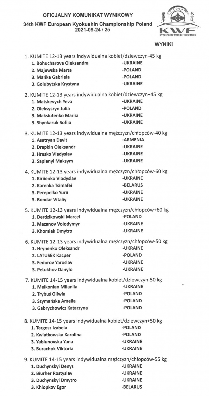 Результаты 34-го Чемпионата Европы KWF (киокушинкай)