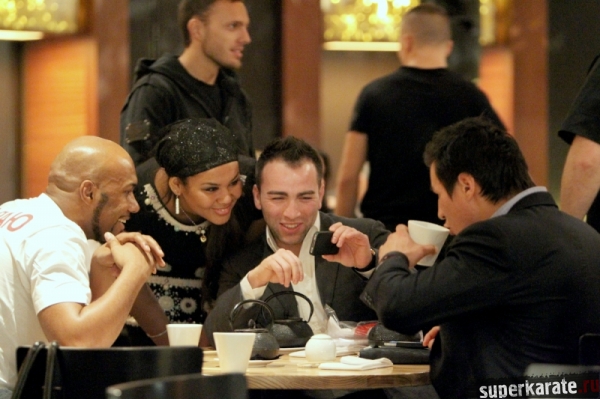 Владимир Хрюнов, менеджер "Battle of two Empires" и именитый российский боксер Александр Лебзяк организовали ужин в честь Роя Джонса и предстоящего события в ресторане Роберта де Ниро "Nobu Moscow".