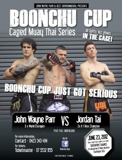 Самый известный австралийский боец муай тай в среднем весе Джон Уэйн Парр возвращается в строй после серьезной травмы руки, из-за которой в феврале этого года он не смог выйти на ринг против Kи Холленбека. Противником Парра станет Иордания Тай. Бой пройдет по полным правилам тайского бокса. Однако антураж поединка во многом будет отличаться от привычных нам боев по муай тай.